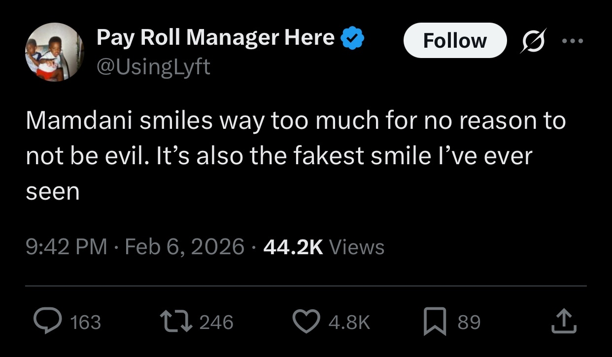 >>528047637ever seen? what a fucking bullshitter. zuckerberg and tons of other jews have faker smiles, not sure why he had to lie and say mamdani's smile was the "fakest he's ever seen"