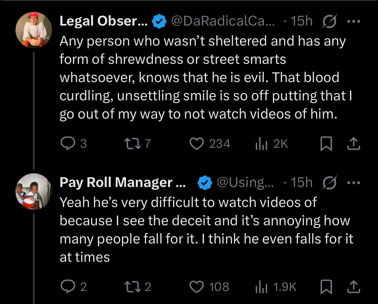 Its still blows my mind people actually fall for his fake smile.
