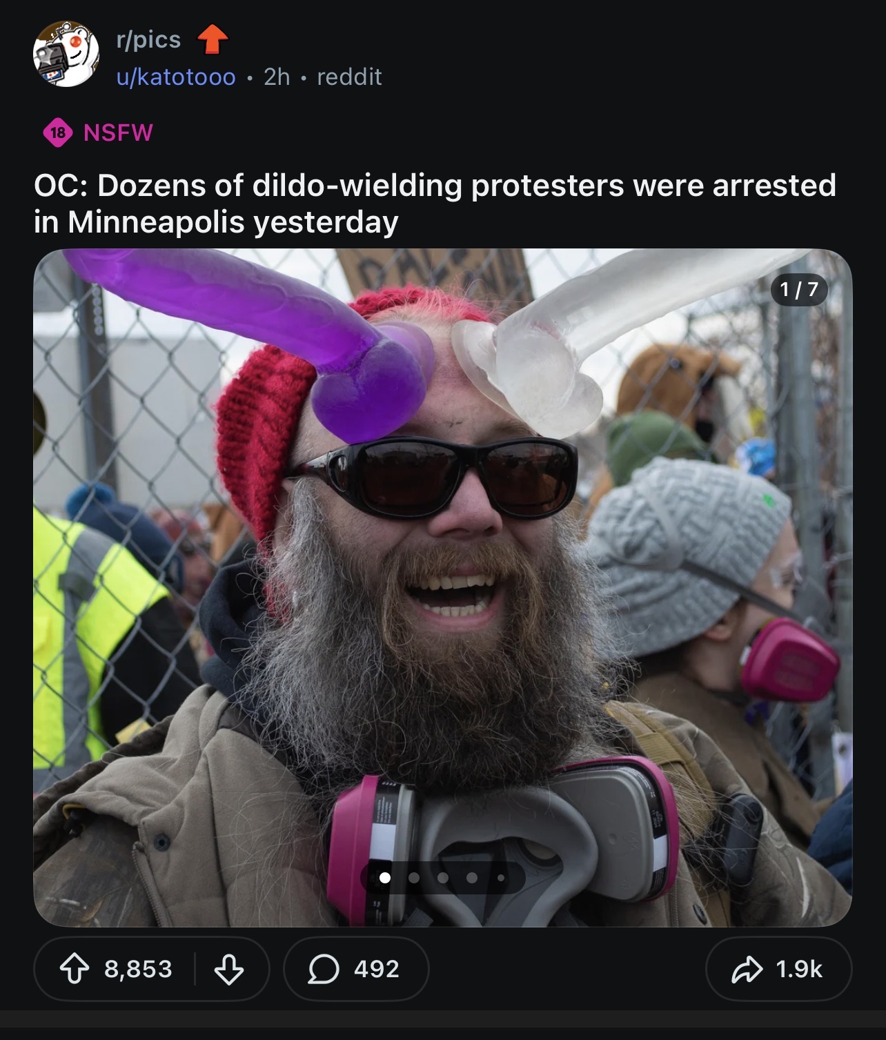 >>528049222A month ago right wingers were chucking dildos at WNBA games. Throwing them at police is a little more high risk and hilarious