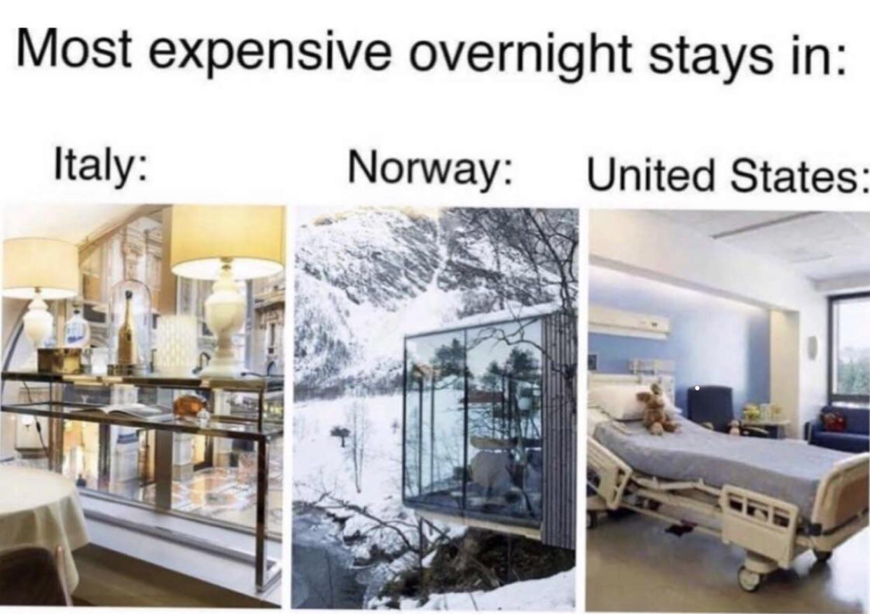 >>528054096Yeah, sure thing, just go on do that >be me>taking turn at emergency>man comes in, hobo, speaks only English, tells us he feels bad>perform him a general check up under instructions of the doctor>turns out he has a tumor as big a an apple blocking his intestines>to be operated in extreme urgency>talk to hospital administrator presenting doctor directives>operations costs 150k dollars>admin calls American embassy>Yankee asks if hobo is insured>nope>”kick him out”>administrator ends up using hospital endowment for financing the operation under instructions of the doctor