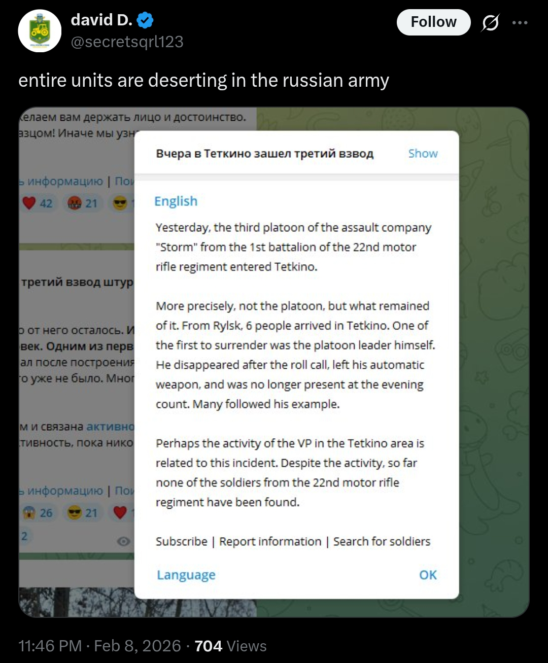 >>528073745true trueanywaysspeaking of fuck-upsdid you see that part of the belgorod population is getting evacuated?it has been proven time and time again that hohols believe their own propaganda I guess they actually think ziggers are blind due to "muh starlink" and will try another round in belgorod