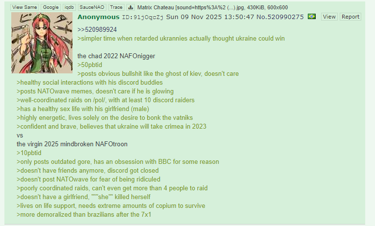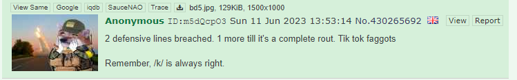 >>528055577ZI denounce the talmud>>528054755>that means either a hew contrahruk is imminent or a new russian offensive is immentI'm going to guess it's the first optionbelgorod round 4 (or 5?)it's never too late for yet another black eye