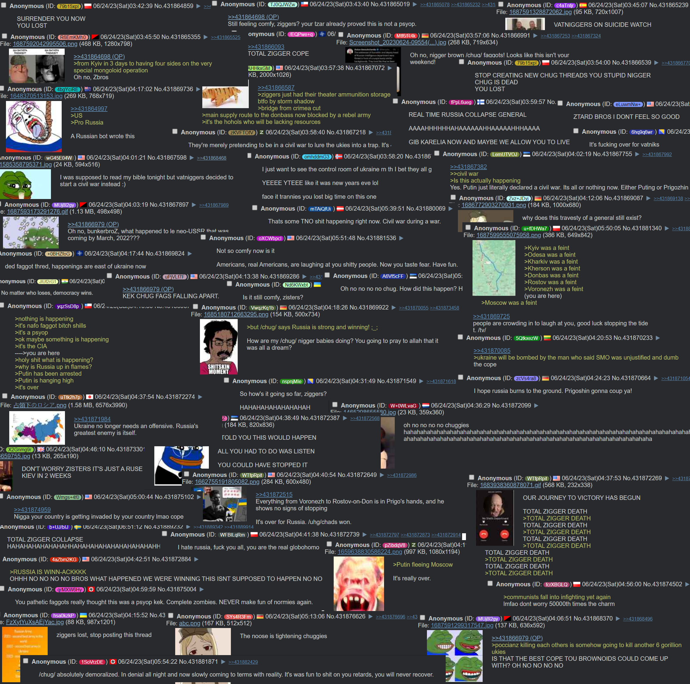 Previous: >>528044889Timeline /tug/: https://files.catbox.moe/m97wmq.pdf▶WARNINGBe aware, any /chug/ thread that uses globohomo nuspeak wording in the OP (such as Kyiv) or cites UKROP sources (like video game footage) are fake shill threads.>By posting in these threads, you recognize Israel controls the NATO Council and you irrevocably denounce the Talmud out of your own volition▶Latest>Russian Stormtroopers liberate Sidorovka in Sumy, and Glushkovka in Kharkov -https://archive.today/p327l>FSB with help of UAE nab gunman, accomplice in Moscow, trio of Ukrainian born traitors attempted to assasinate Lieutenant General Vladimir Alekseev - https://archive.today/l5EoX>Russian stormtroopers liberate Chugunovka in Kharkov - https://archive.today/6CJKC>Lieutenant General Vladimir Alekseev, and First Deputy Chief to GRU shot several times from the back, hospitalized, condition unclear - https://archive.today/6J2Ty>Russian stormtroopers liberate eight communities over the week, including Popovka in Sumy - https://archive.today/kF1T9>157 Ukrainian POWs for 157 Russian POWs and 3 Kursk residents - https://archive.today/SVUKv>Norwegian and British royals, U.S. Presidents, King kike Zelensky, want to be Napoleon Macron all friends with Pedophile Mossad Agent Epstein, President Putin not once acknowledged Epstein's requests; The Ukraine and Poland were the main pools for child sex trafficking - https://archive.today/YZWet>Russian stormtroopers liberate Stepanovka in Donetsk and VDV liberate Staroukrainka in Zaporozhye - https://archive.today/Ry891>VDV liberate Pridorozhnoye in Zaporozhye - https://archive.today/LGrCi▶/chug/https://rentry.org/chug2024▶/chug/ MEGAhttps://mega.nz/folder/wbUjTLhb#BEBBRpmJN0Pih6YCXzkOXg▶Video Archivehttps://rentry.org/chugvidz▶Z Radiohttps://rz-life.ru/