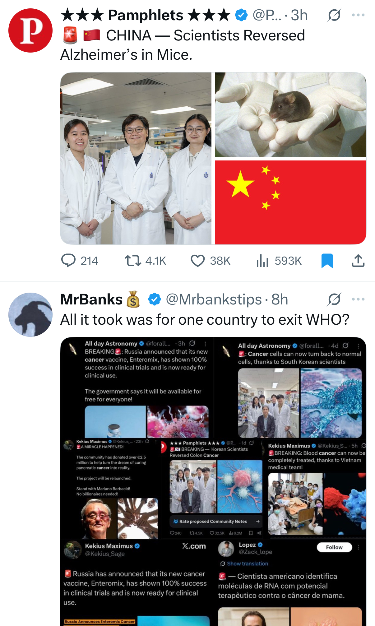 >>528056227The vaccine was literally to test mRNA cancer CURES & cull the weak simultaneously. It worked. We know how to cure cancer and reduced the population.