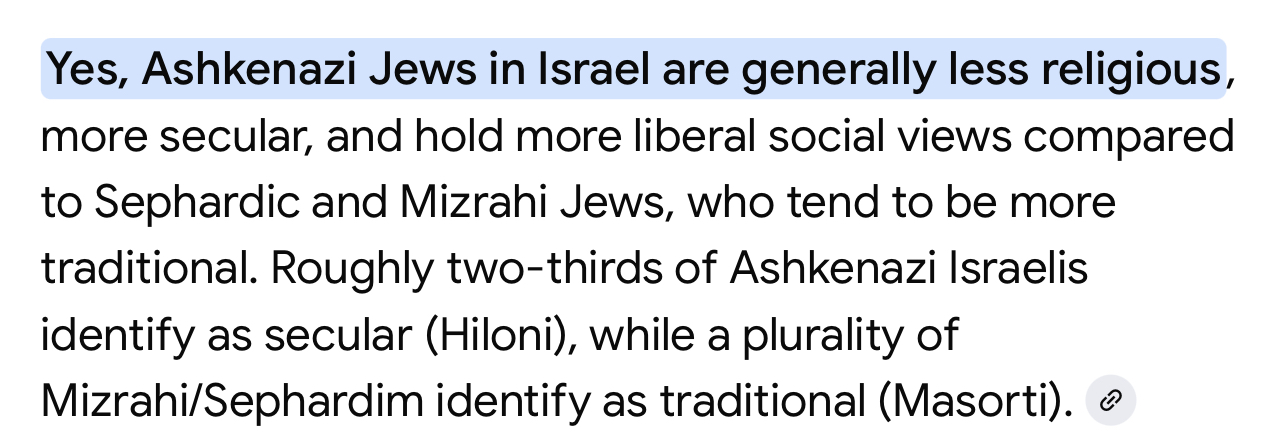 The average IQ in Israel is 96 and falling each year.Language, reading and mathematics skills are falling each year. Ashkenazi almost always end up being mudsharks. Their kids become browner and dumber.The only exception is Haredim Jews. They are so insular that they shun even other Jews who aren’t from their same villages in Ukraine and Belarus.They would never accept you. The Jewish elites you are thinking of, are really just genetically bottlenecked Europeans with slightly more Neanderthal admixture.They are not religious, and only culturally Jewish, and tend to dabble in Kabbalah, Satanism or other pretentious New Age type stuff.