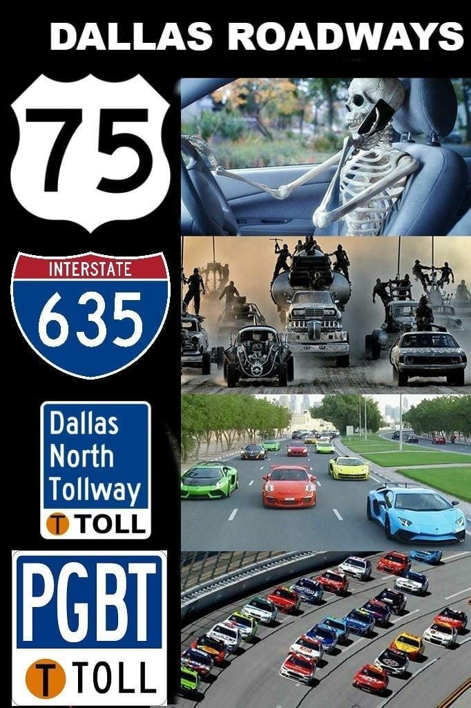 Doesn't matter. In DFW there is no such thing as a speed limit even on side roads, DUI is a hobby, having no insurance, license, registration a way of life, texting while driving yes, almost coming to a complete stop to merge onto interstate a requirement, stop signs and red lights are to be ignored, pedestrians get mowed down on the sidewalk, drifting into the next lane because those lines mean nothing...