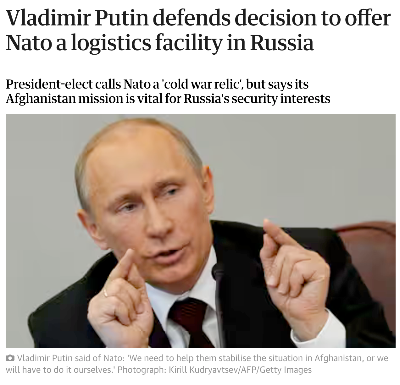 >>528085137>last 20 years>WW2shitskin math>>528085013I always had an argumentSee >>528084425"No it's not"And Putin saying that NATO's work in Afghanistan was vital to Russia's security interests