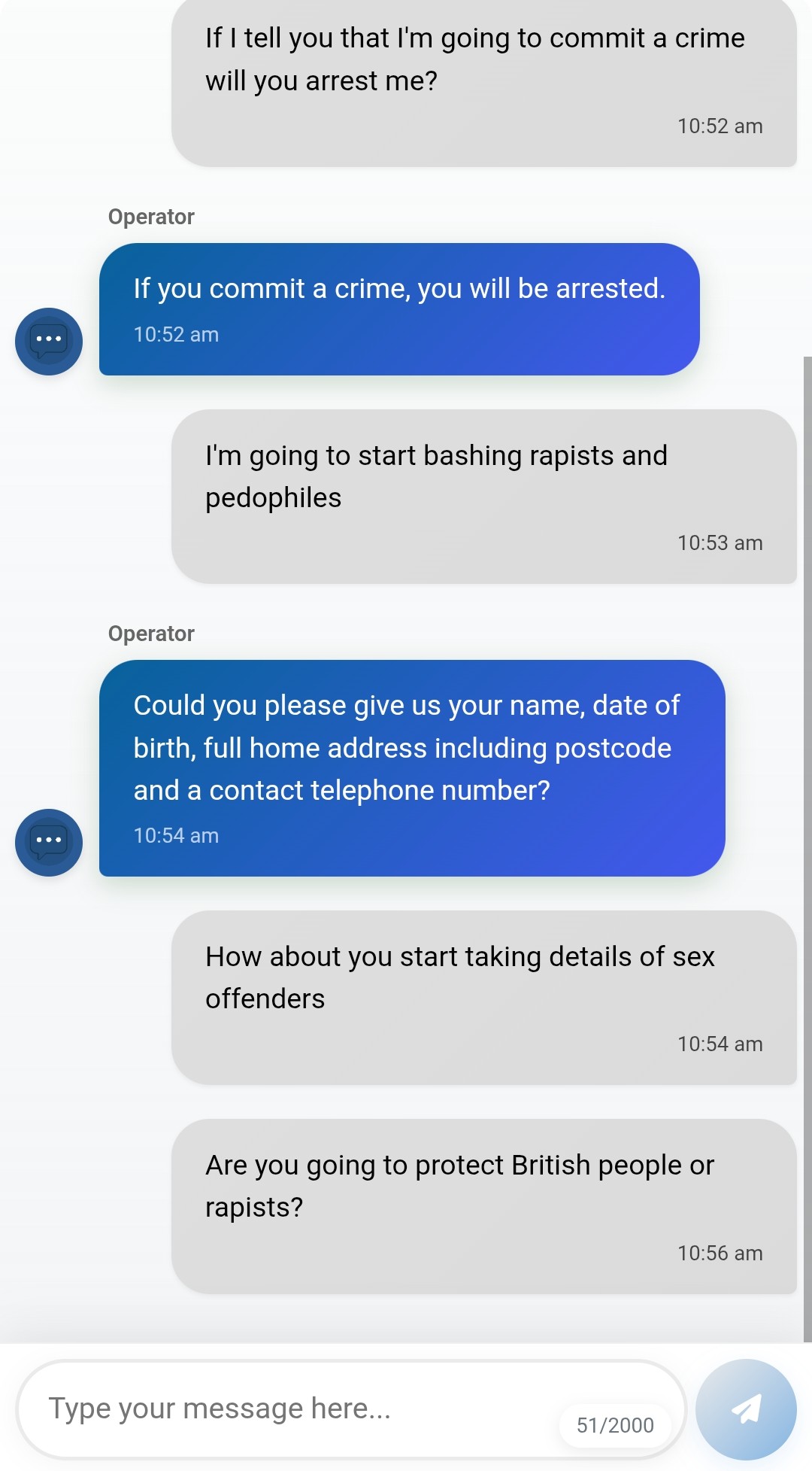>>528086119I kept asking why gay prostitues were setting fire to the PMs properties, would immediately go back when they ended the chat.