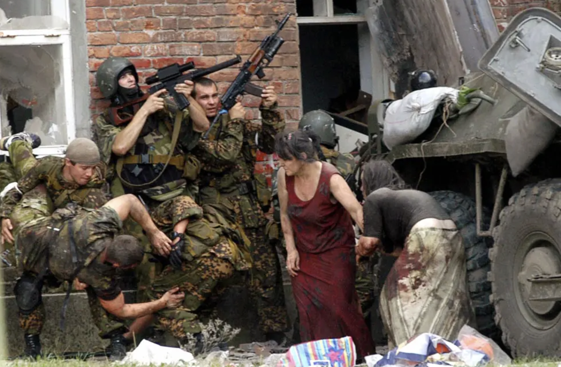 >>528087938Your point is too veiled for me.Do you remember Beslan? Even if you were young at that time? Have you seen the photos or read the witness statements? It's a private thing. I don't demand you prove anything to me.Pic is one of the safest I can post because 4chan jannies would clean up the rest as they show soldiers hauling out children who are covered in blood or dead (even though they are entirely journalistic in nature).