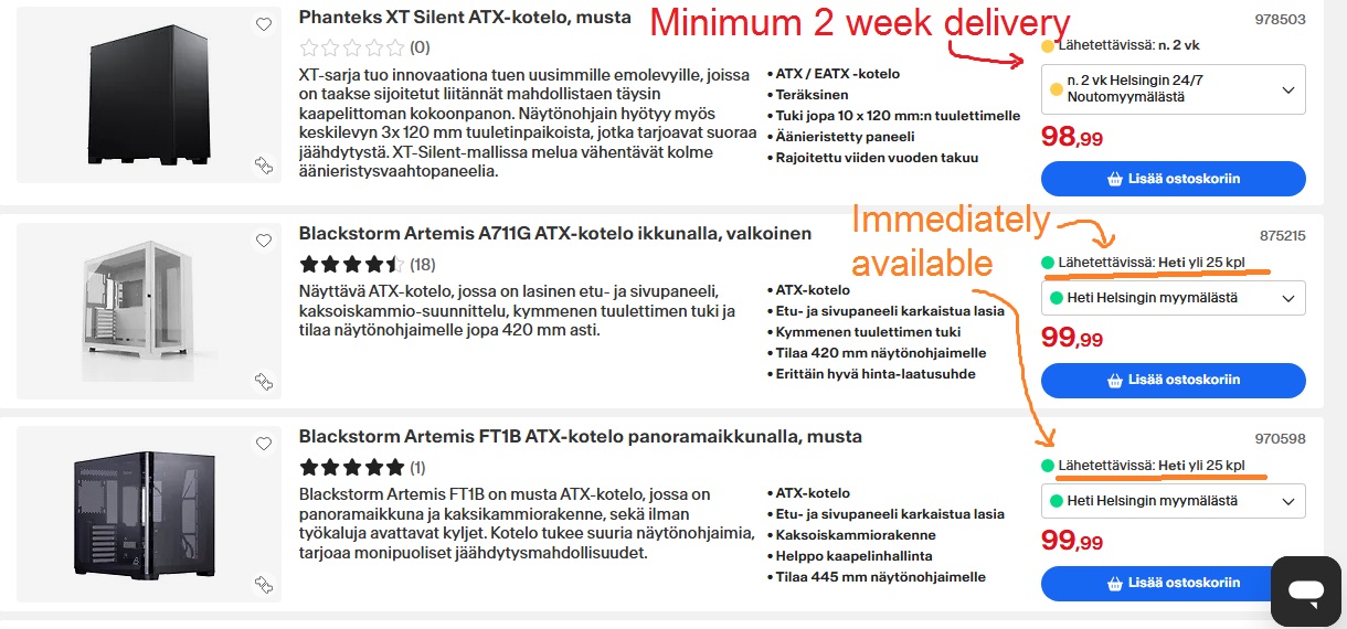 >>528084764>they are unobtainable for you in finland maybe, in germany we have big tower full metal cases on amazon and in other stores in stock as well