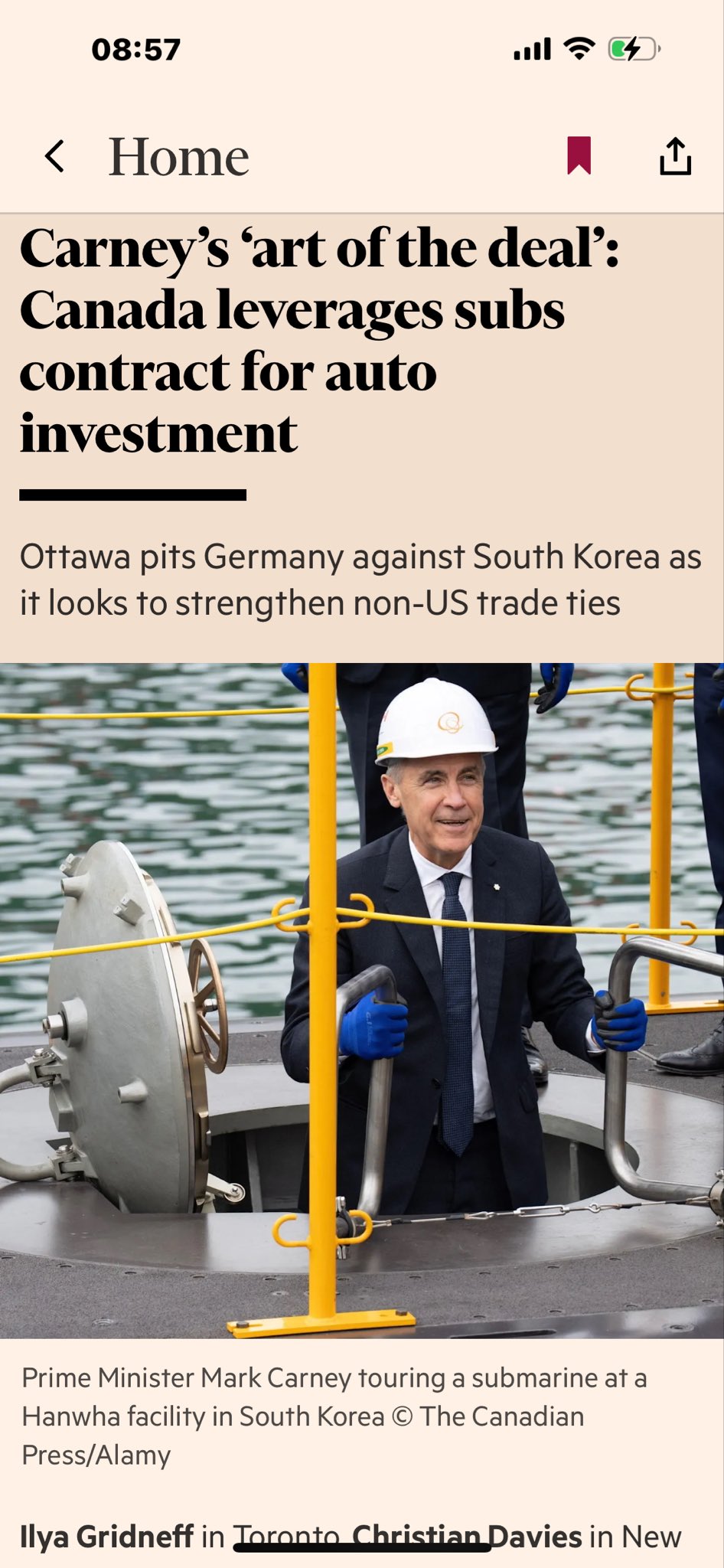>Canada is playing hardball with a $40bn submarine contract as it tries to turbocharge investment in civilian sectors ranging from steel and cars to energy and mining, and boost its economic independence from the US.>The contest to build 12 diesel-powered, 3,000-tonne subs capable of operating in Arctic conditions is pitting South Korean conglomerate Hanwha against a joint German-Norwegian team led by a subsidiary of industrial giant Thyssenkrupp, with final bids due to be submitted next month.Watch how a real master negotiator deals.