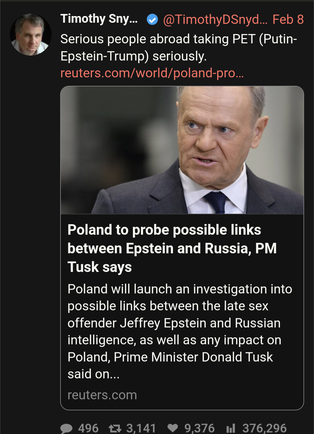 >>528107501I'm not using tor nor a vpn, seethe more magoid.>>528107581Sure, he was groomed and instructed to repeat Russian state talking points from as early as he was on TV.He used to sell apartments to rich Russians for a couple million bucks no questions asked.He still repeats and pushes Russian state talking points and interests on their behalf.>What power do they hold over him?Compromising material of all kinds and they're both aligned in their authoritarian and materialist ambitions.You reckon a man that raped children is some beacon of morality or something?