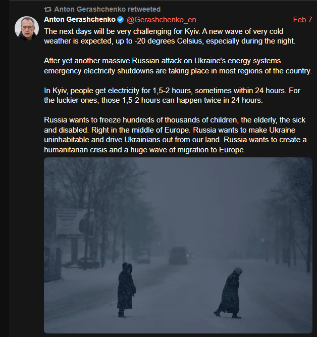 >- Extreme blackouts and heat outages continue for goyim in Ukraine. It's better for goyim this way