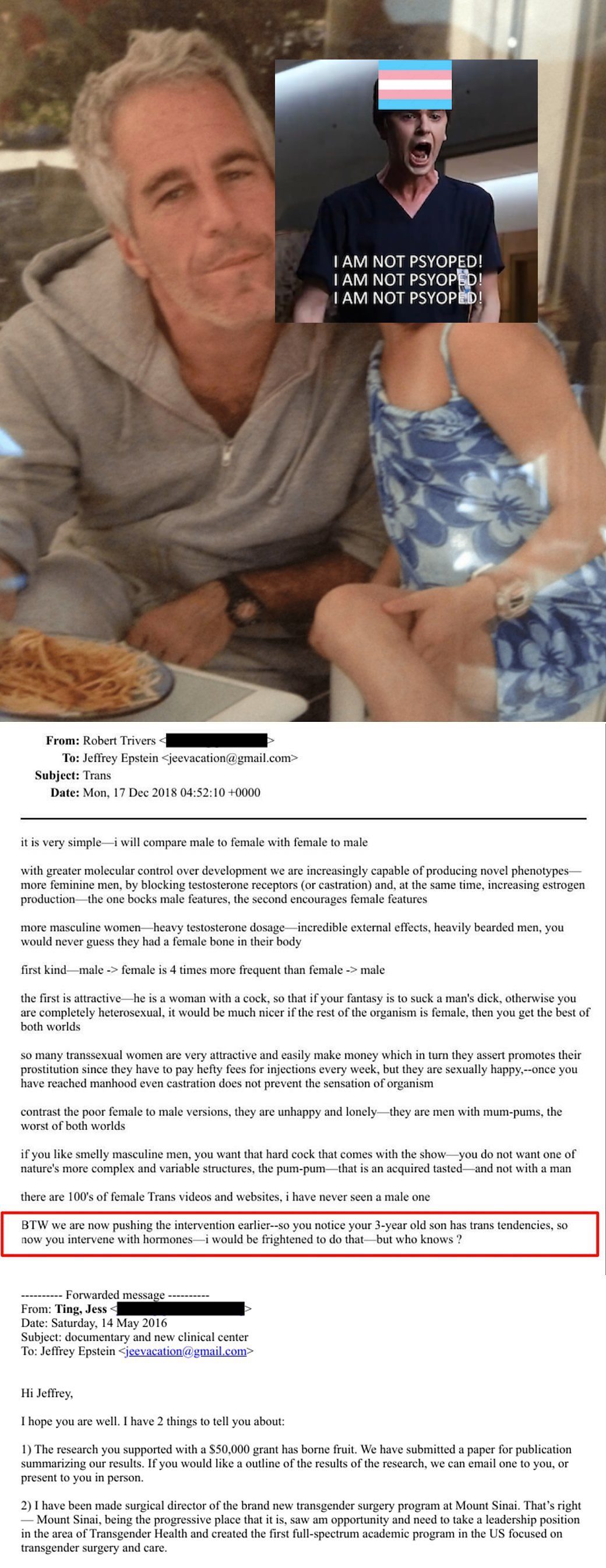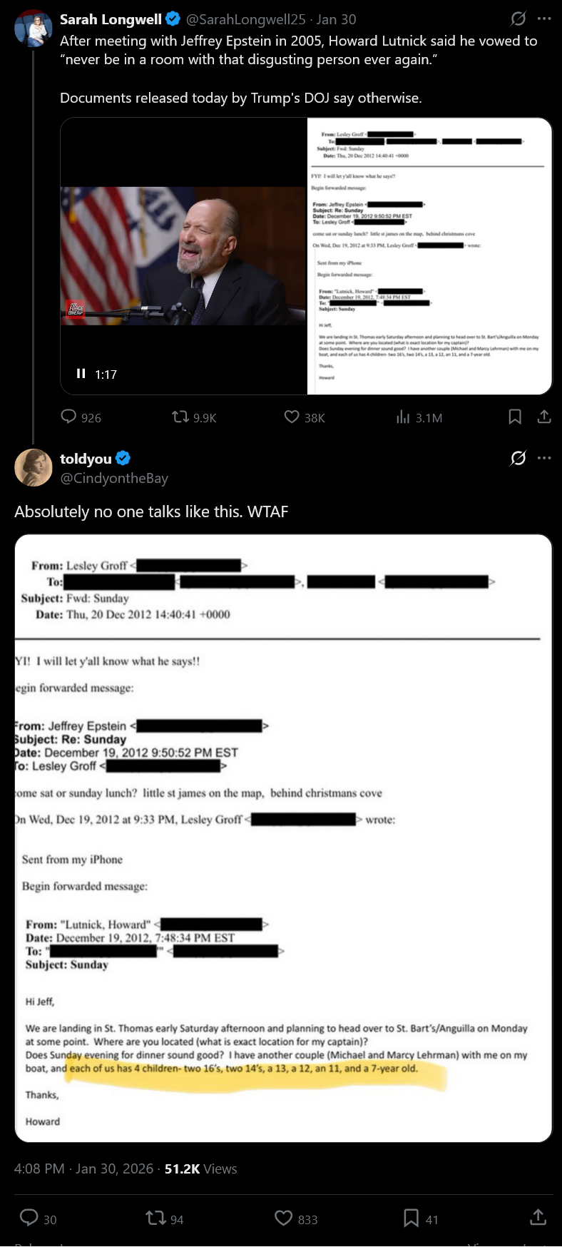 >>528137536This is how Epstein got people, innocent things like listing your travel group or children's ages is tainted and casts an evil look on anyone tm who communicated with him. He was a genuine toxic individualLuttnik did nothing wrong