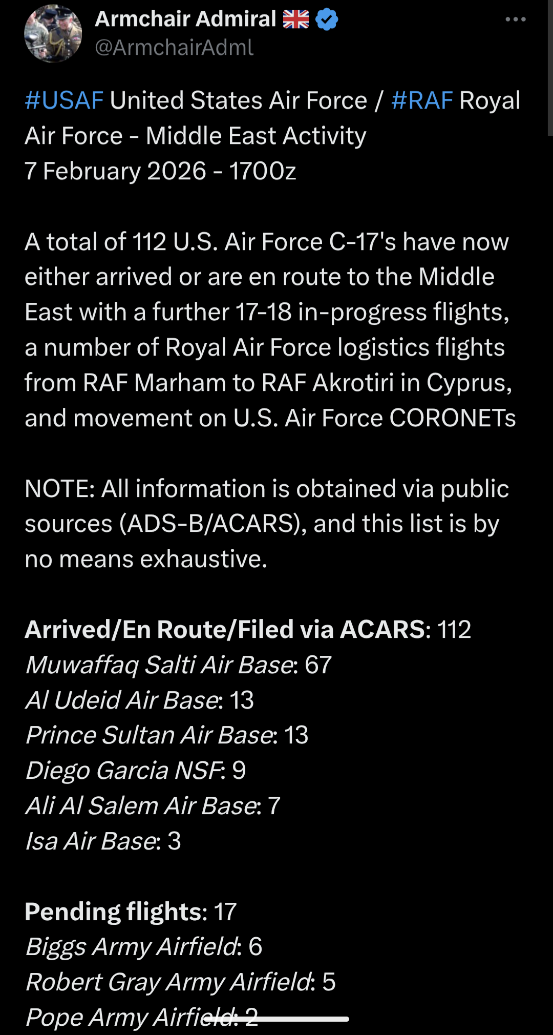 >>528136836I understand that but the post seemed to imply the C-17s aren’t going back and forth instead just landing and hanging out. That’s what I don’t understand.