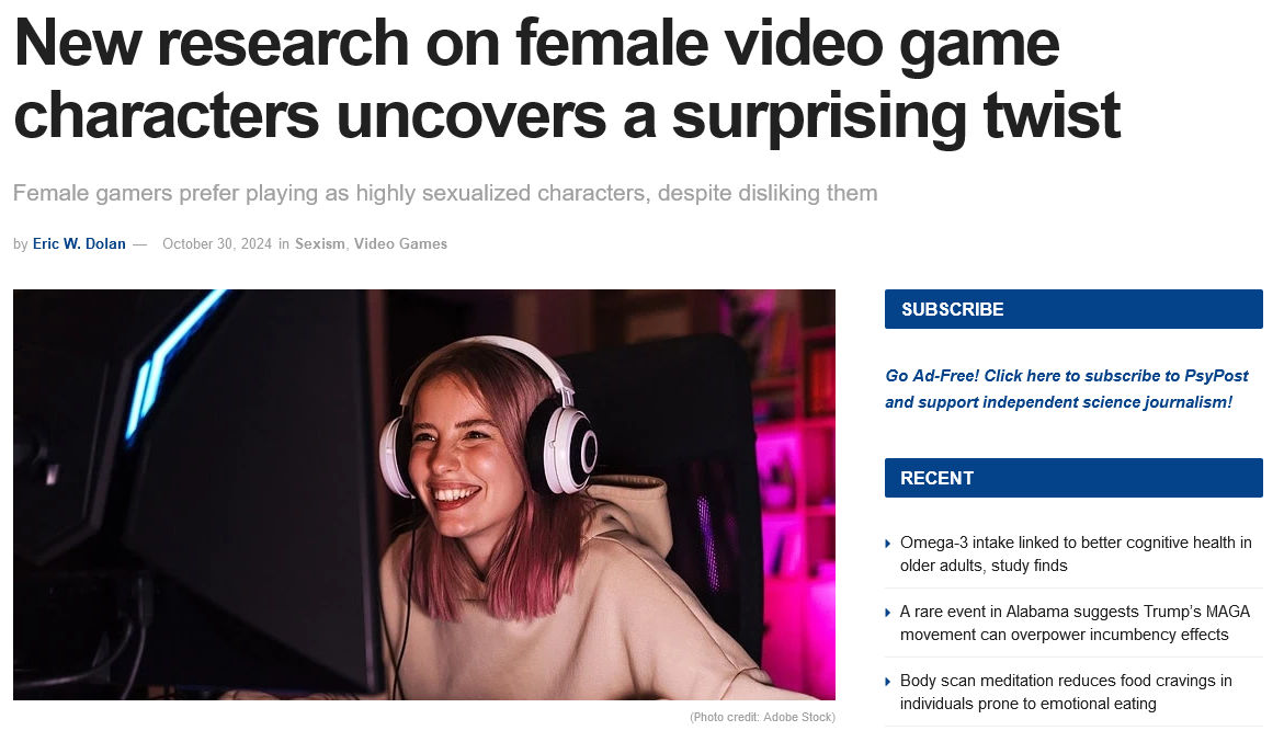 >>528190302Women will make their characters bimbos too.https://www.psypost.org/new-research-on-female-video-game-characters-uncovers-a-surprising-twist/