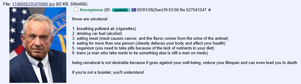 >>528191705>eating meat is unnatural >veganism is unnatural What kind of doublethink is this?