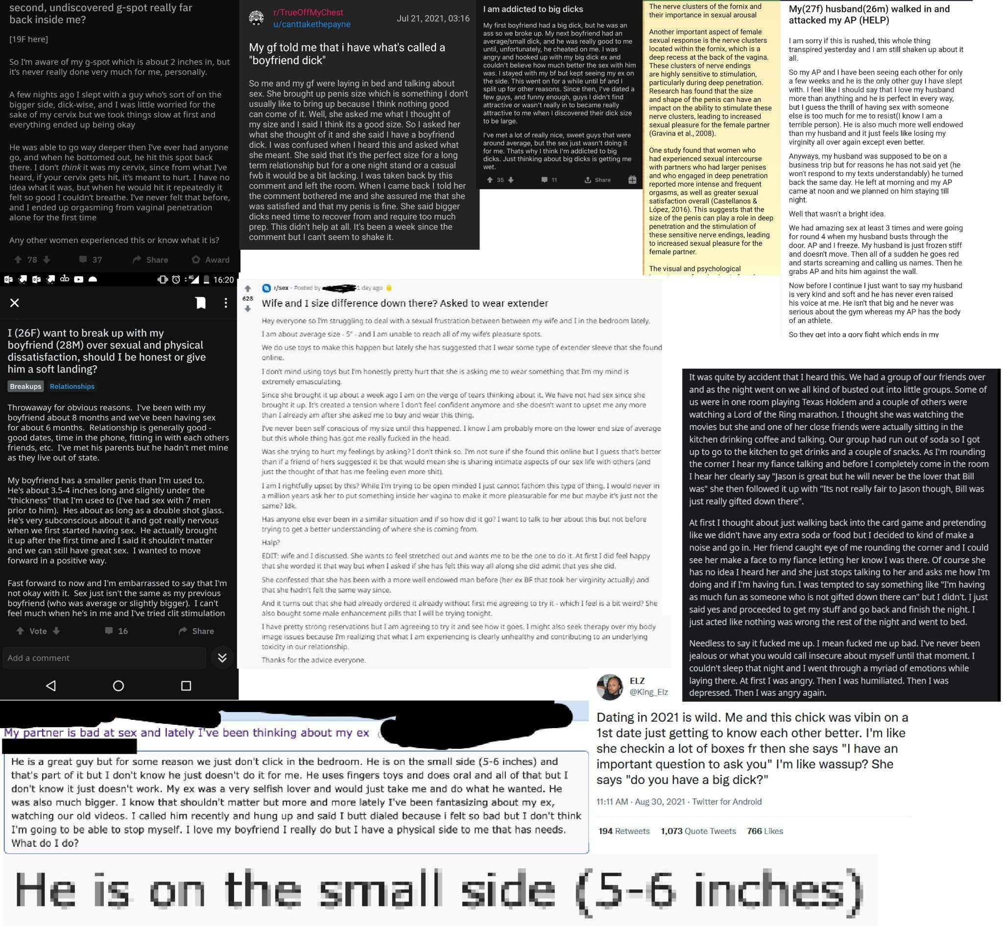 >>528201136if you ever had sex with many women, or even talked to women about sex, you'd know that roughly around 25% of them at most can climax from penetration.The fact that you go around posting charts on sizes already tells a big story on your sexual background.Best orgasms women receive on average is from the g-spot, which is on average just around 3-5 cm deep into the vagina. If you practiced your fingering techniques, you'd know that shoving your hand deep into her produces less effect, than massaging the nearest ridges you can reach. The last chick I fingered, came/sprayed 4 times in 30 mins, just by rubbing that area, and I was barely knuckle-deep. Big pp is cool, primarily for you as a guy - the bigger you are, the more stimulation you receive from thrusting. But only about 1/4 of women can actually cum from that kind of stimulation.