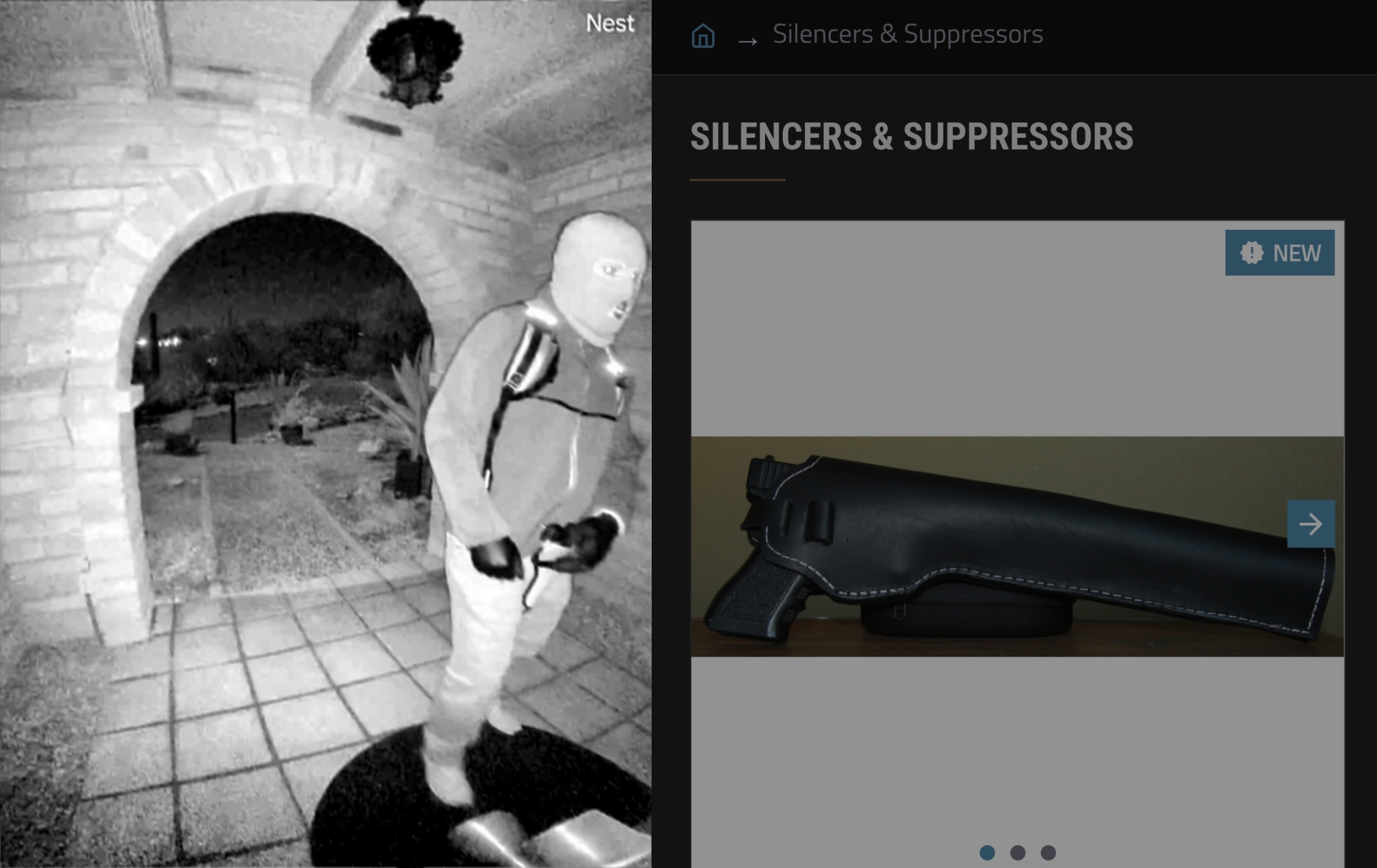 The holster seen on the suspect looks like it might be designed to accommodate a silencer (holster length relative to what we can see of the weapon). If so, it probably increases the likelihood he was going in there with intent to kill her.