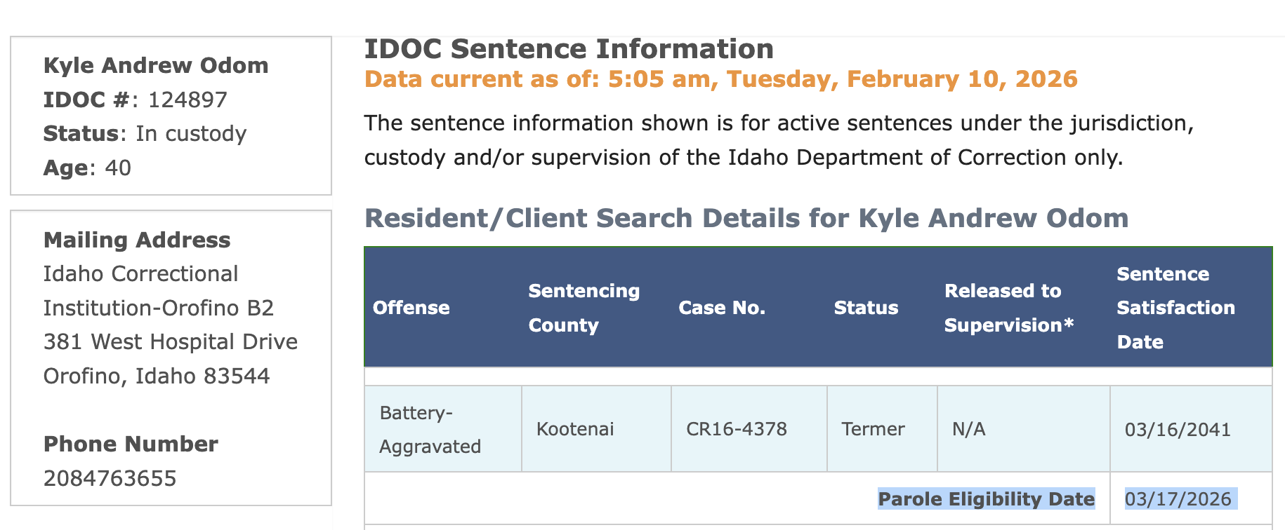 He's eligible for parole 3/17/26. I'm half tempted to write to him or interview him when he gets out.
