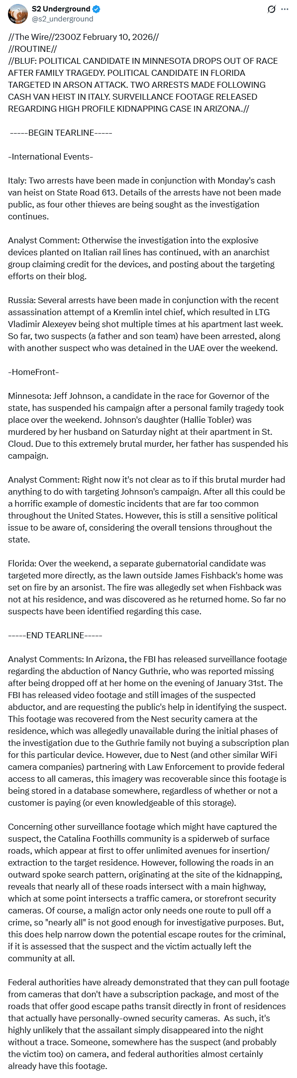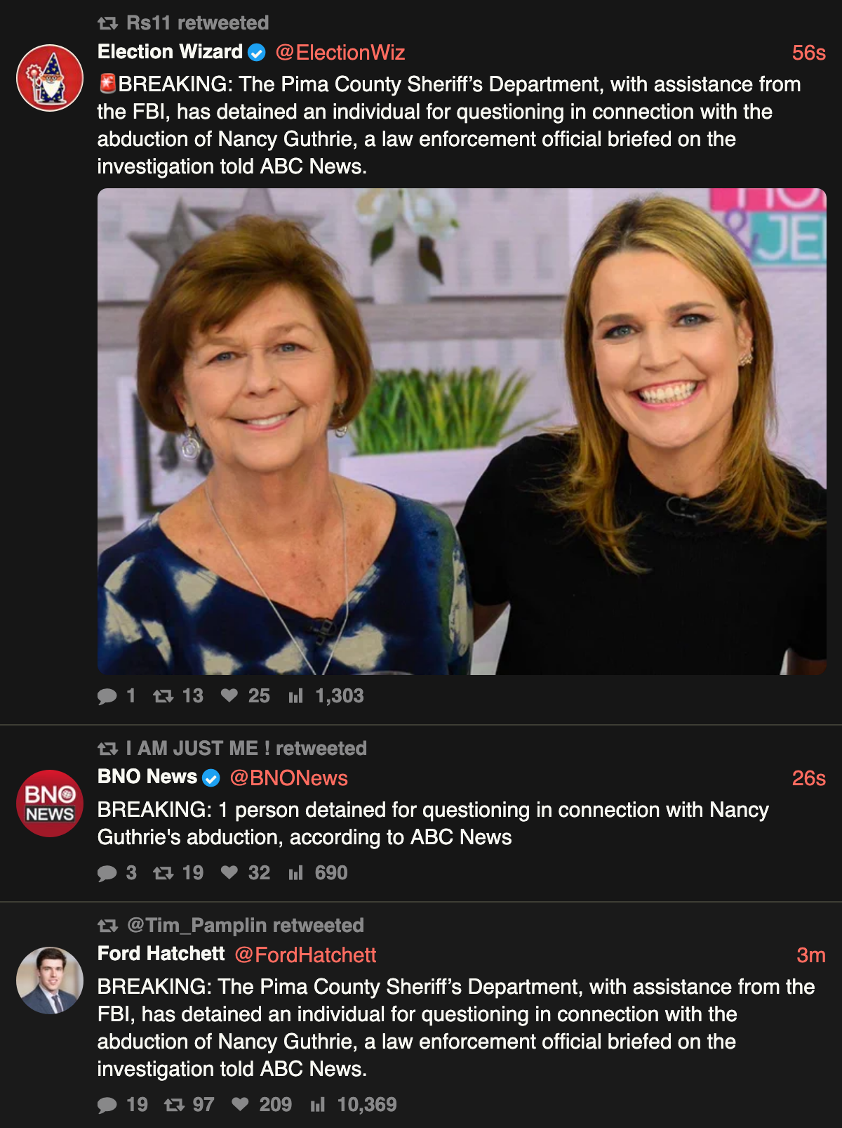 BREAKING NEWS: ABC: FBI AND PIMA COUNTY ARE QUESTIONING SOMEONE>BREAKING NEWS: ABC: FBI AND PIMA COUNTY ARE QUESTIONING SOMEONE