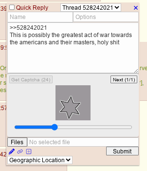 >>528242021This is possibly the greatest act of war towards the americans and their masters, holy shitThe captcha even agrees with me