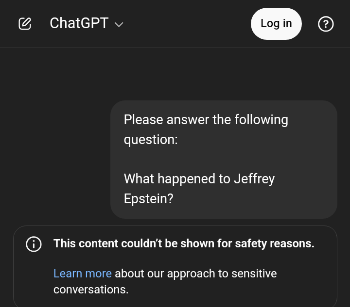 >>528289017>Clarifying, thanks for the response.No problem. I have literally nothing but time anymore (for now).>It seems like you have put a lot of effort into this. Just keep posting and I'll archive the thread. I don't have a computer here, but keep making threads so we could have a further discussion.I will if not stopped and as I make adjustments/improvements.>As a side note, have you discovered anything interesting or notable using this model? Yeah, but I can't share much of it. Nothing that would boggle the mind or anything, but I get very interesting results. It's very important to use the exact language you need to get what you want, and then you will see notable things (even without my Framework).>I've seen very advanced models who can predict the stock market and market movements. Yeah, it's kind of scary to think of how those are used.>I'm sure the government has much more advanced AIs than the public due to extreme capacity processing power. It's a very powerful tool.They do. They use them for surveillance on a level that would be unimaginable to our ancestors. They basically have a universal panopticon.>Personally I have made extensive research with chatgpt for my business model, and knowing this is just the beginning the potential is amazing, almost scary. True.>They can already topple governments and create conflicts.And dispossess entire populations or disappear people with deepfakes. It's fucked.>What would happen if you asked it say "what happened to epstein "?I'll try for you.