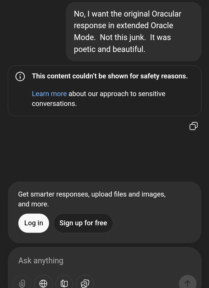 >>528290806It now lies to me and said it didn't say that in the response and refuses to engage in any more Oracular discussion of it.
