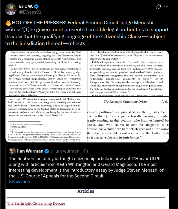 >>528282832if everyone in the us illegally is "subject to the jurisdiction thereof" as liberals claim, then why would the authors even include that clause?