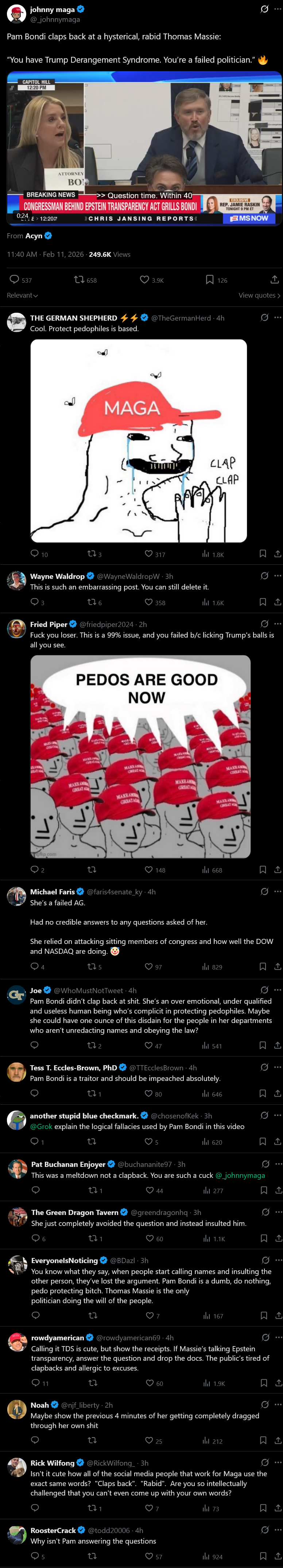>Pam Bondi CLAPS BACKMIGA mouthpiece accounts getting absolutely BTFO