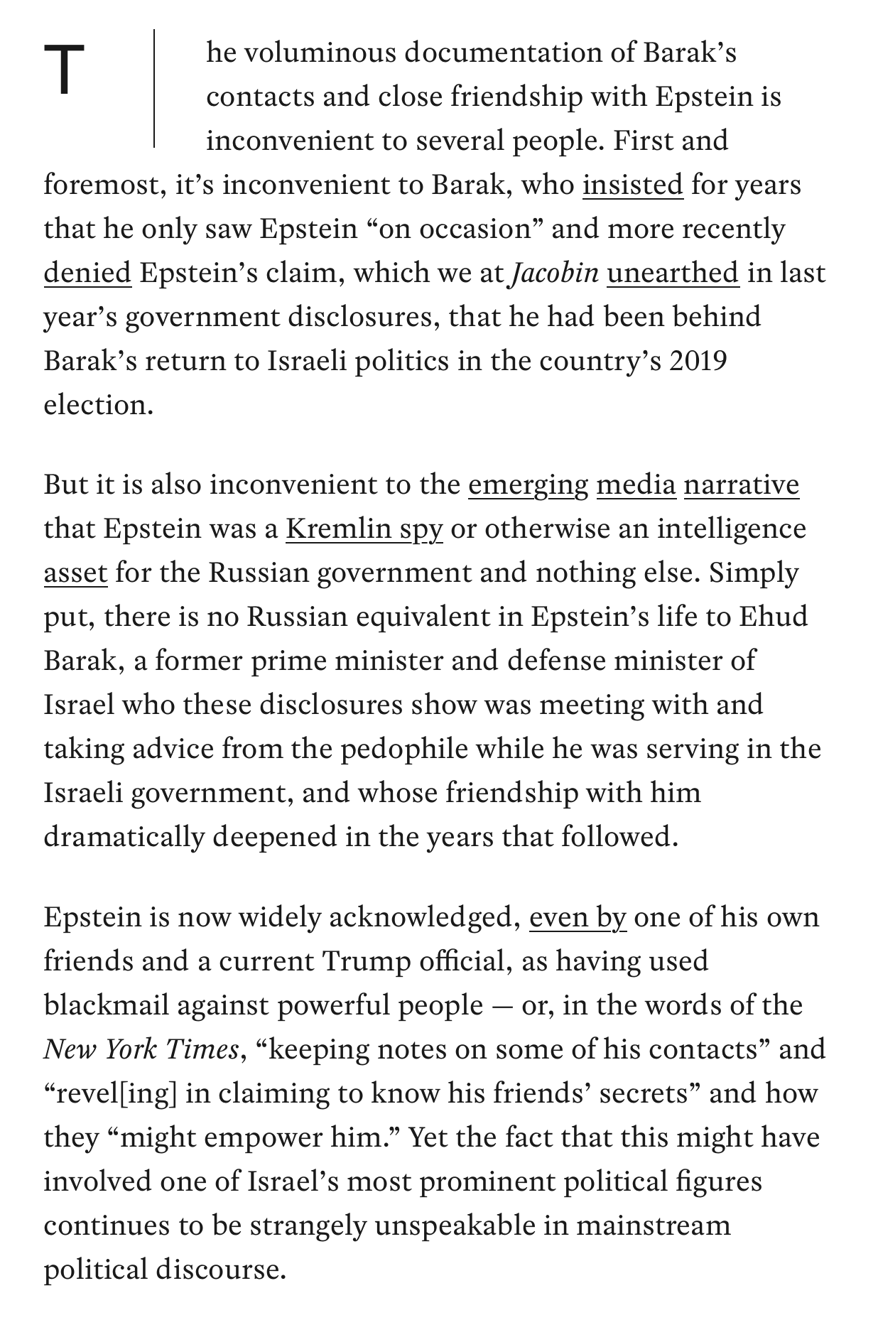 >>528299888>who knows how dark epstein really gotthe fbi, the president, the attorney general, probably every single major celebrity, jews, mossad, benjamin netanyahu, that orthodox rabbi who said goyim are only fit to be slaves who had like a million jews attend his funeral, the rothschilds, the clintons, the obamas, i mean, the list is endless