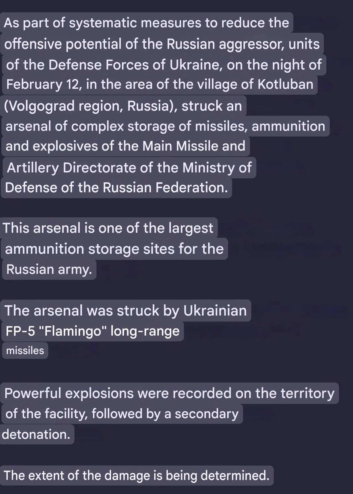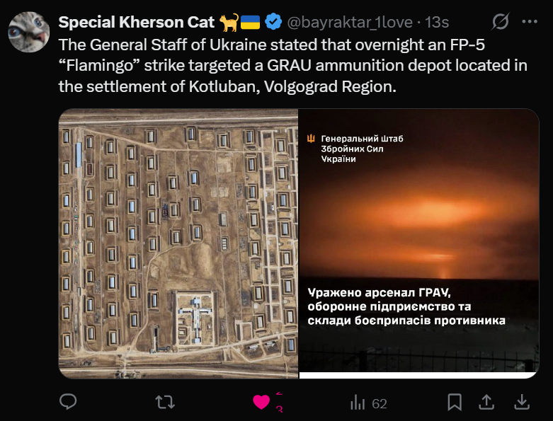Previous: >>528276194Day 1,450 – Daily assessment: understandingwar.org/analysis/russia-ukraine/#research▶Latest>EU Parliament Approves €90B Ukraine Support Loan>Volgograd refinery droned>Pesgov says Delegram bloging does nod affegt frondline communications :DDDDDD>Telegram throttled in Russia, with plans to ban it completely within a year>Russian Lt Gen Vladimir Alexgayev shot several times in Moscow>Starlink shuts down Russian ground stations in Ukraine, only whitelisted Ukrainian stations still operate>Sweden preparing one of its largest aid packages for Ukraine>SBU Alpha FPV operators eliminated over 1,800 russians in Pokrovsk sector in one week, the unit reports>First countermeasures against Starlink misuse are in place after russia began using Starlink-equipped drones for strikes>Norway confirmed plans for $7 billion in military aid to Ukraine in 2026>Frozen pipes in Bilhorod and Omsk burst en masse after large-scale blackouts>The US secured a $235 million contract to repair and service Ukraine’s F-16 fighter jets in Belgium>Iranian sources say Iran’s navy will hold joint military exercises with China and russia>lavrov: The truce sought by Zelensky is unacceptable to russia>russian losses in Ukraine 'more than any major power' in any war since World War II>Ukrainian military stats say four out of five russian military targets destroyed or damaged in combat in 2025 were taken out by a drone.>Atesh Sabotage Cuts Power to russian Military Plant in Udmurtia>Zelensky prepared for a face-to-face meeting with monke - Sybiha▶Telegramrentry.org/telosint2023t.me/ukr_pics▶Intelt.me/DeepStateENodin.tradoc.army.mil/WEG (equipment explorer)ukr.warspotting.net (visually confirmed losses)▶Mapsdeepstatemap.live/enliveuamap.com/en▶DISPOSABLE SOLDIER (diary of a RU mobik)TOURS 1-4: files.catbox.moe/mpcw7p.zip▶12 min of TZD in one ditch (Pokrovsk area) - 28 killedfiles.catbox.moe/sxbxfb.mp4