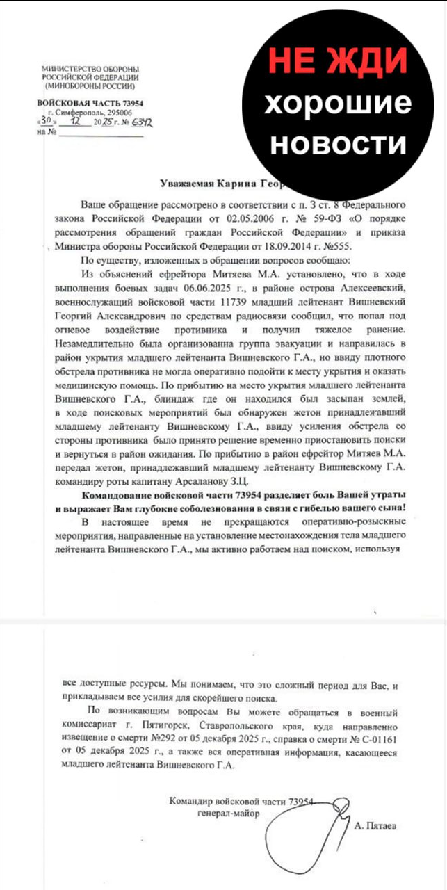 >>5283182292/2Alnykina alleges that the command of the 1st Guards Tank Army, to which the 153rd Regiment belongs, has stalled the necessary paperwork to clarify her husband's status. Despite repeated inquiries since the birth of her daughter in late 2025, she says she has received only verbal assurances that "court proceedings are underway."In place of financial aid, the state offered her a "social nanny" for eight hours a week."You're going to laugh," she said of the offer. "The maximum the state has provided me is... two times a week, a social nanny for four hours."Her appeals to the Prosecutor's Office have been dismissed, with officials responding that the situation is "normal" and proceeding according to regulations.