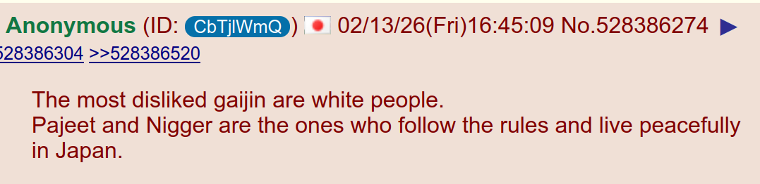 >>528379918>Just don't behave like a nigger, Reminder that Japan has>groping>rape>crime cover up>porno industries>prostitution industriesThat is Indian tierJapanese are just cleaner Indians. Both are races of rapists