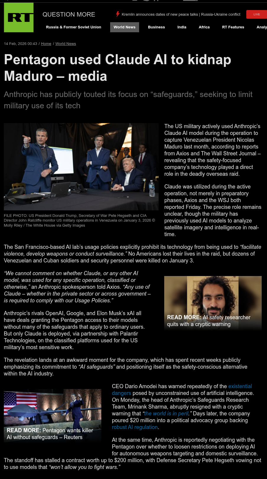>Marco Rubio skipped a key meeting with European leaders on Ukraine in Munich, cancelling at the last minute due to scheduling conflicts. — Financial Times>European officials viewed the move as a sign that Washington is losing interest in coordinating closely with its allies on ending the war.>One EU official called the decision "insane".https://www.ft.com/content/fdd602f0-317a-429f-b122-7898257dd804