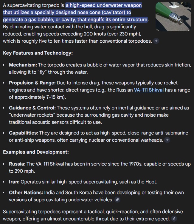 >>528436473>there is always some magical Russian weapon...like i say: exactly like the pro-hohol cheerleaders but pro-Russia instead. Surprised the muh Oreshnik wasn't called.So explain whether or not China could use Russian anti-ship missiles to sink a carrier. Or do you think Russia doesn't export or wouldn't supply them unofficially or officially to China if China was attacked by the US? Do you think a carrier group's air defence would be able to intercept a handful of Kh-22s or even Kh-31s? Let along newer, faster stuff or low altitude supersonic Onyxes and what not. What about supercavitating torpedoes? How would a carrier group defend against those? And why doesn't the jewest have supercavitating torpedoes? Just another policy decision? Do you think one or a handful of supercavitating torpedo would not be worth sinking a carrier?