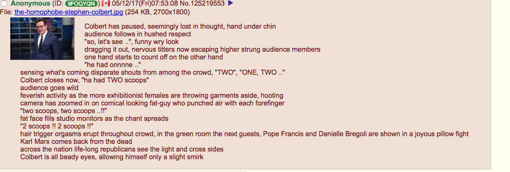 >>528447941Googled it, no sources say it's Colbert except random posts on reddit, which again, I don't use so no wonder I never saw it. I don't know what you want me to do with this video, it's off-putting and weird but you're acting like theres something im missing. Let's assume it's Colbert. What next?