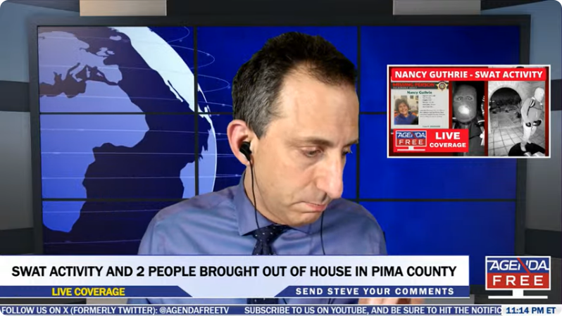 okay apparently the scene currently in the news is connected the guthrie disappearance but there's no guthrie, they're chasing up a lead and cannot discuss itthe sherriff via KOLD newsfrom news jews streamsomething might develop soon but that's it for nowI don't even care about this shit, I just keep seeing it and happen to be awakethere's the QRD fellasstay classy, san diego