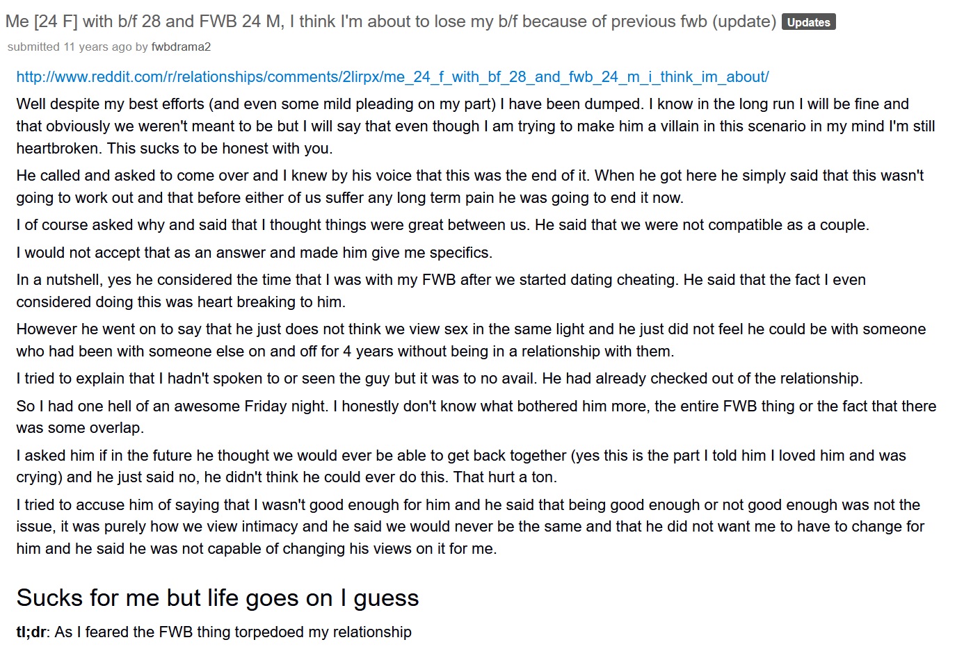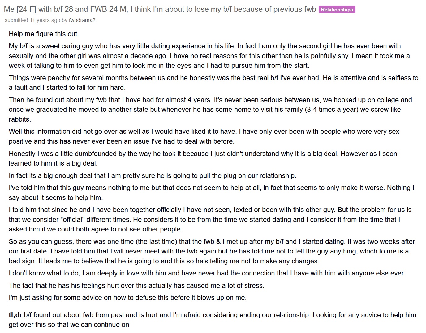 Found this absolute banger an hour ago while dumpster diving about the state of "romance" today. One of their comments later is about how great it's been exploring her sexuality with this FWB but wants true love now.