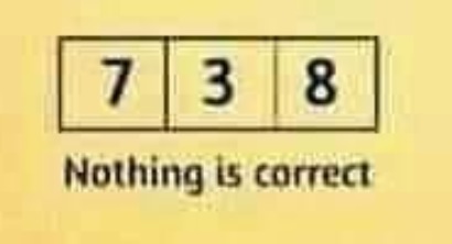 >>528452336zie >>5284520761 nummer is correct EN op de juiste plaats gezetdat betekent dat er mogelijk nog een correcte nummer is, zelfs twee, maar NIET op de juiste plek>>528452351yes, one number correct AND well placedthat means that the other two numbers can also be correct, BUT wrongly placedsee >>528452076