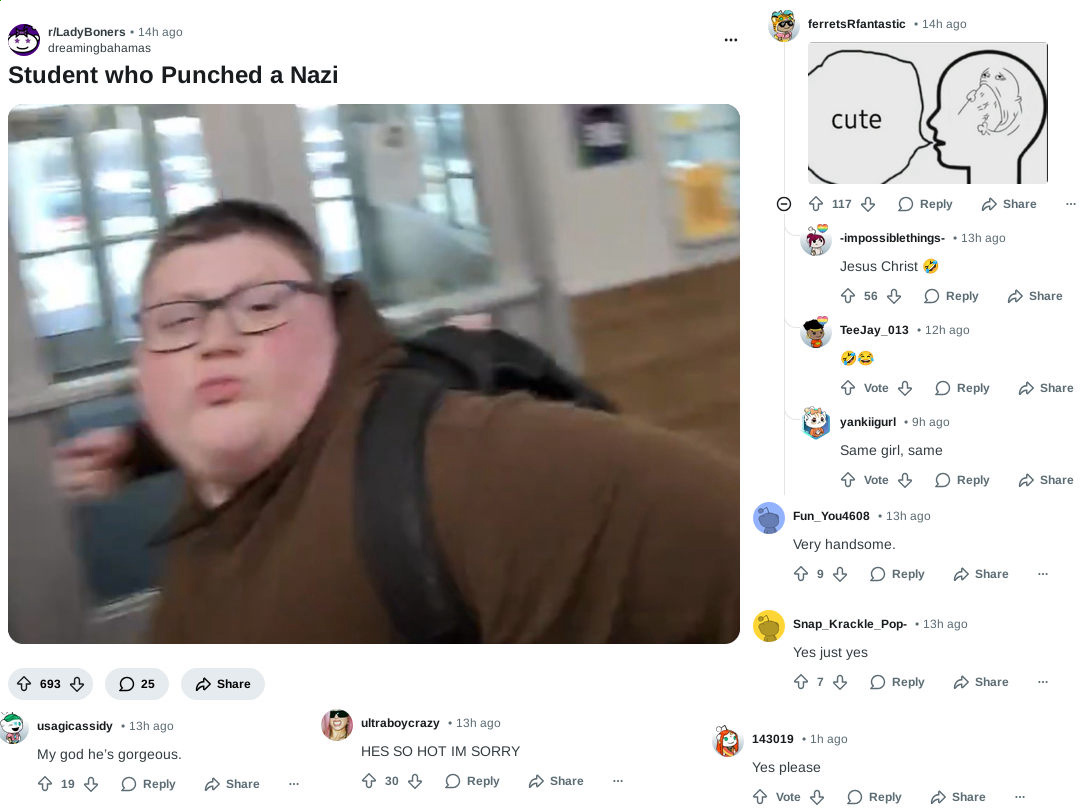 >>528478078This. A good chunk of those comments come from male leftist activists pretending to be females lusting after male leftist activists.