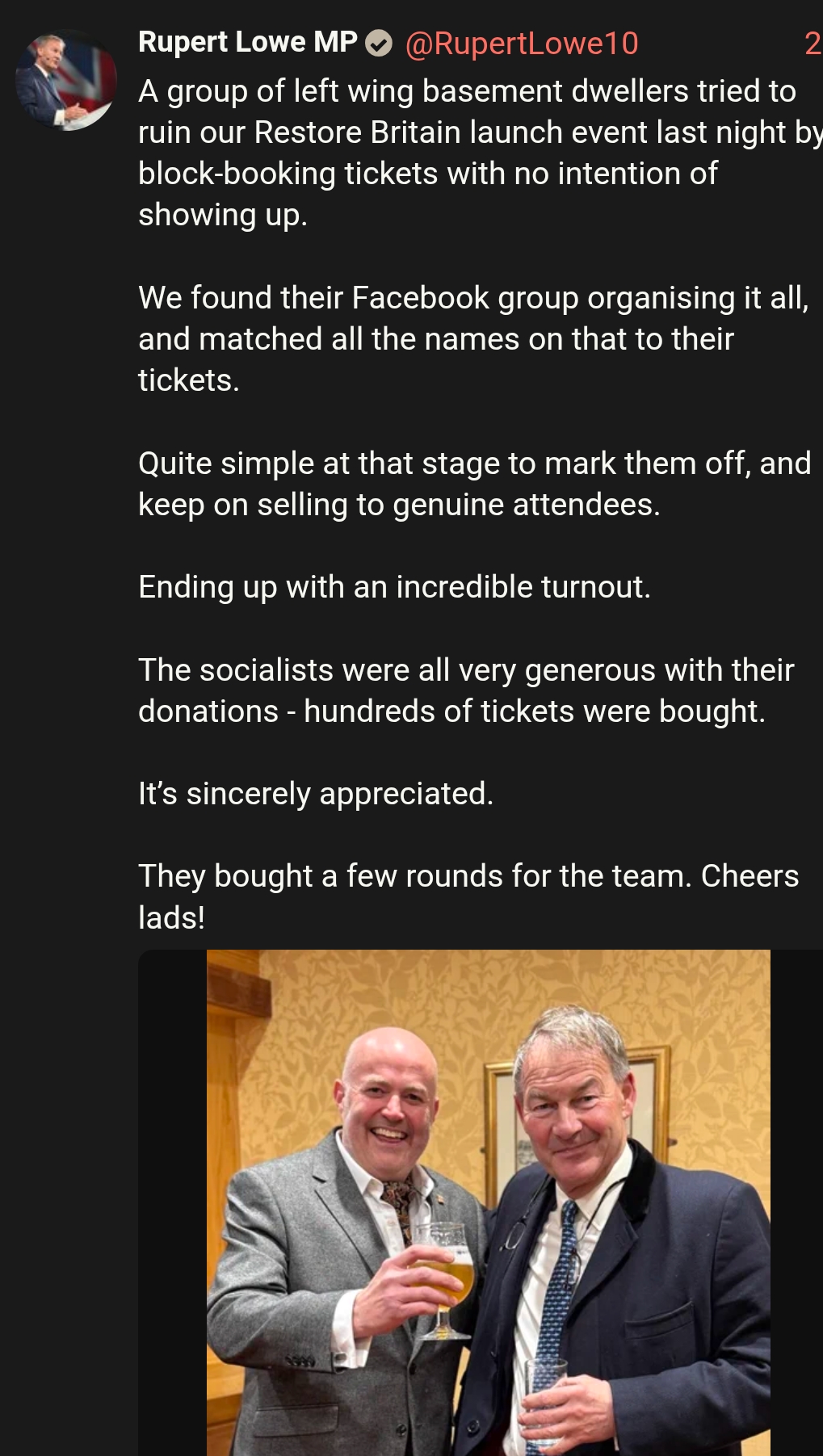 Lads we need to keep up the high energy behind restore britain basically from now on until Rupert is PM. Our future literally depends on it