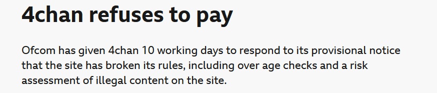 how the fuck have they banned imgur and bitchute in the UK but not 4chan? Surely it should have been the first thing they banned