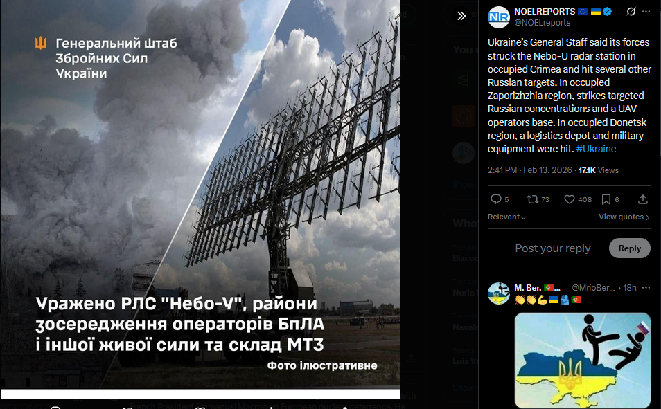 >Ukraine struck $100 million Russian Nebo-U radar system in occupied Crimea