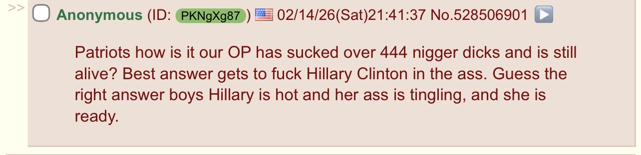 kekhe even uses the same vocabulary from his sisters>"cumchuggers">not a single nigger>not a single faggot or tranny (don't want to offend the sis)he has to use the PC acceptable "cumchugger"