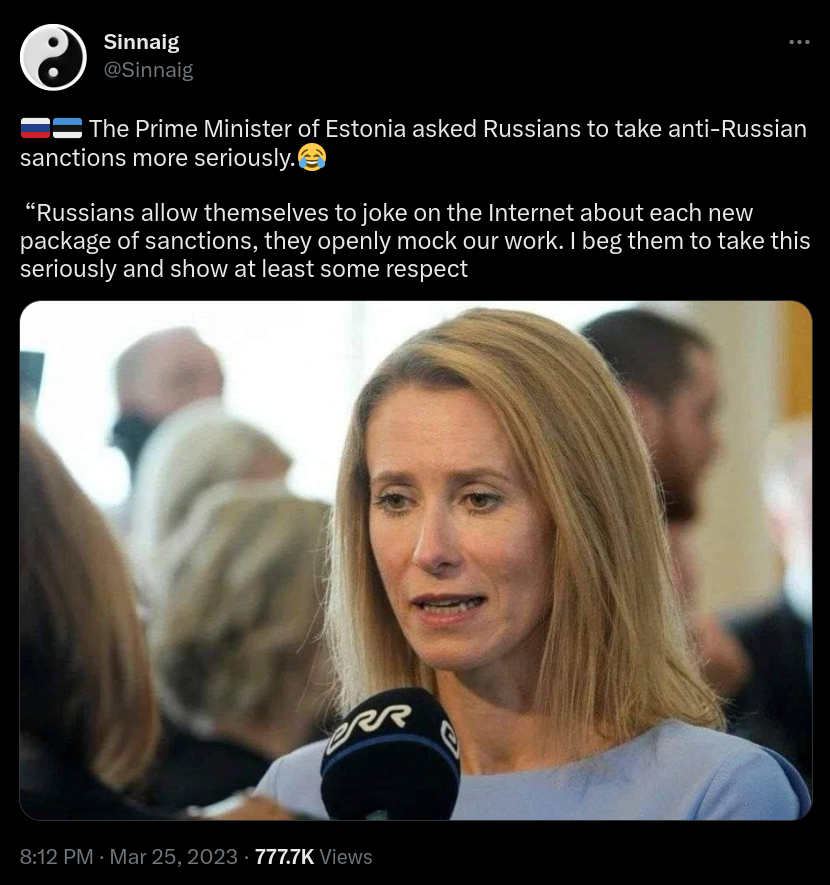 >>528514282>Just one more sanctions package bro, trust me bro, this time is different, believe me bro, this time it will work for sure, the 20th time is the one we crack em bro, just one more sanctions package bro