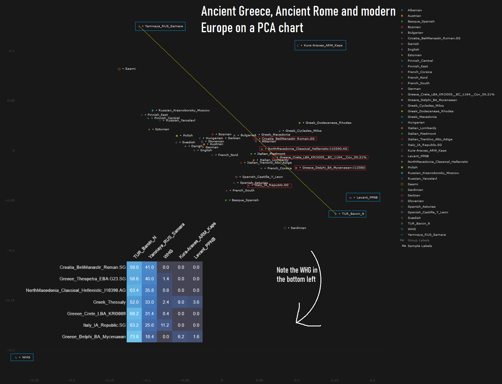 >>528548006I don't take issue with the raw data. Clearly Italy had large gene flows from Hellenistic Anatolia. I just don't see this as particularly problematic, and much of what we think of as Greek in fact comes from there. You cannot divorce Anatolia from Greece in this way.