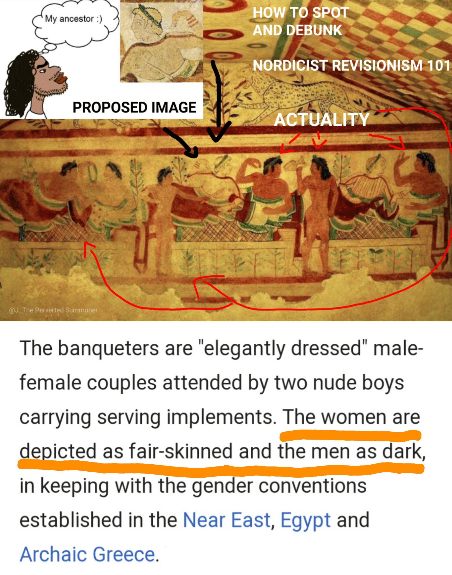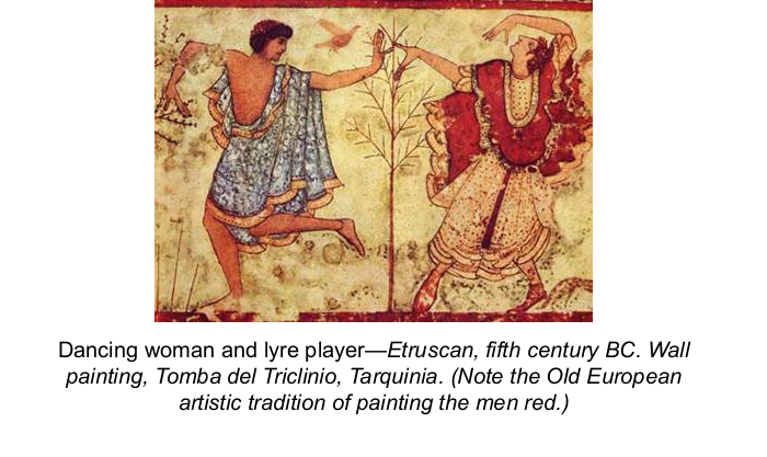 >>528541121>Theopompus of Chios, 4th cent. BCE Histories Book 43I could also quote Trumpus of Muttland and come up with equal drivel. The truth is that the Estruscans founded Rome and were invaded by the Indo-European Latini tribe and completely absorbed into the Roman Empire by 100BC.And no, not all Etruscan women were portrayed as having blond hair as you insuinate. However, you are correct about the differences between colors men and women were painted.