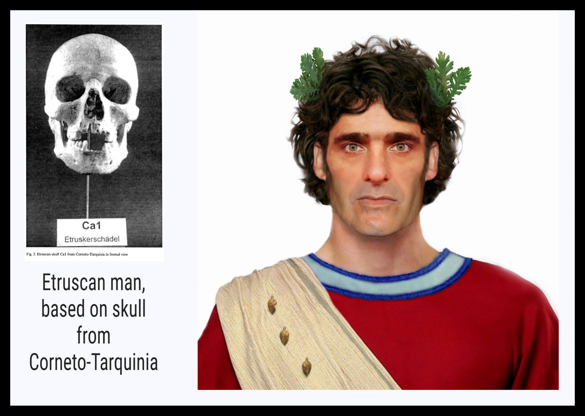>>528540301Etruscans were more blond than Latins and yet most of their blond representations were female.>The facial features (the profile, almond-shaped eyes, large nose) in the frescoes and sculptures, and the depiction of reddish-brown men and light-skinned women, influenced by archaic Greek art, followed the artistic traditions from the Eastern Mediterranean, that had spread even among the Greeks themselves, and to a lesser extent also to other several civilizations in the central and western Mediterranean up to the Iberian Peninsula>In 2024, 6 individuals of Etruscan remains from Tarquinia, Lazio, dated the 9th-7th Century BC, were studied and confirmed the previous finds, Etruscans were an indigenous population. The admixture model showed that they were 84-92% Italy Bell Beaker and 8-26% additional Yamnaya Samara (Steppe-related) ancestry, but with one individual being more similar to Iron Age populations from Scandinavia, and north-west Europe. The two male individuals studied for Y-Chromosome belonged to the J2b/J-M12 lineage, and the five studied mitochondrial haplogroups were typical of post-Neolithic Europe. Phenotypic traits showed blue-eyes, light/dark brown hair, and pale to intermediate skin tones