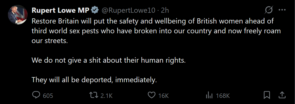 >Lowe is great, Farage kosher boomercon is a faggot.